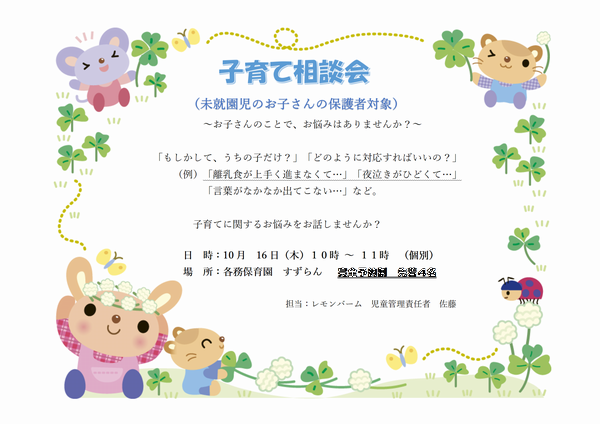 10/16は子育て相談会も併せて開催します。