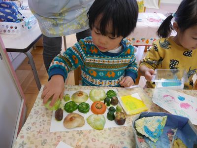 野菜スタンプで楽しく遊びました。