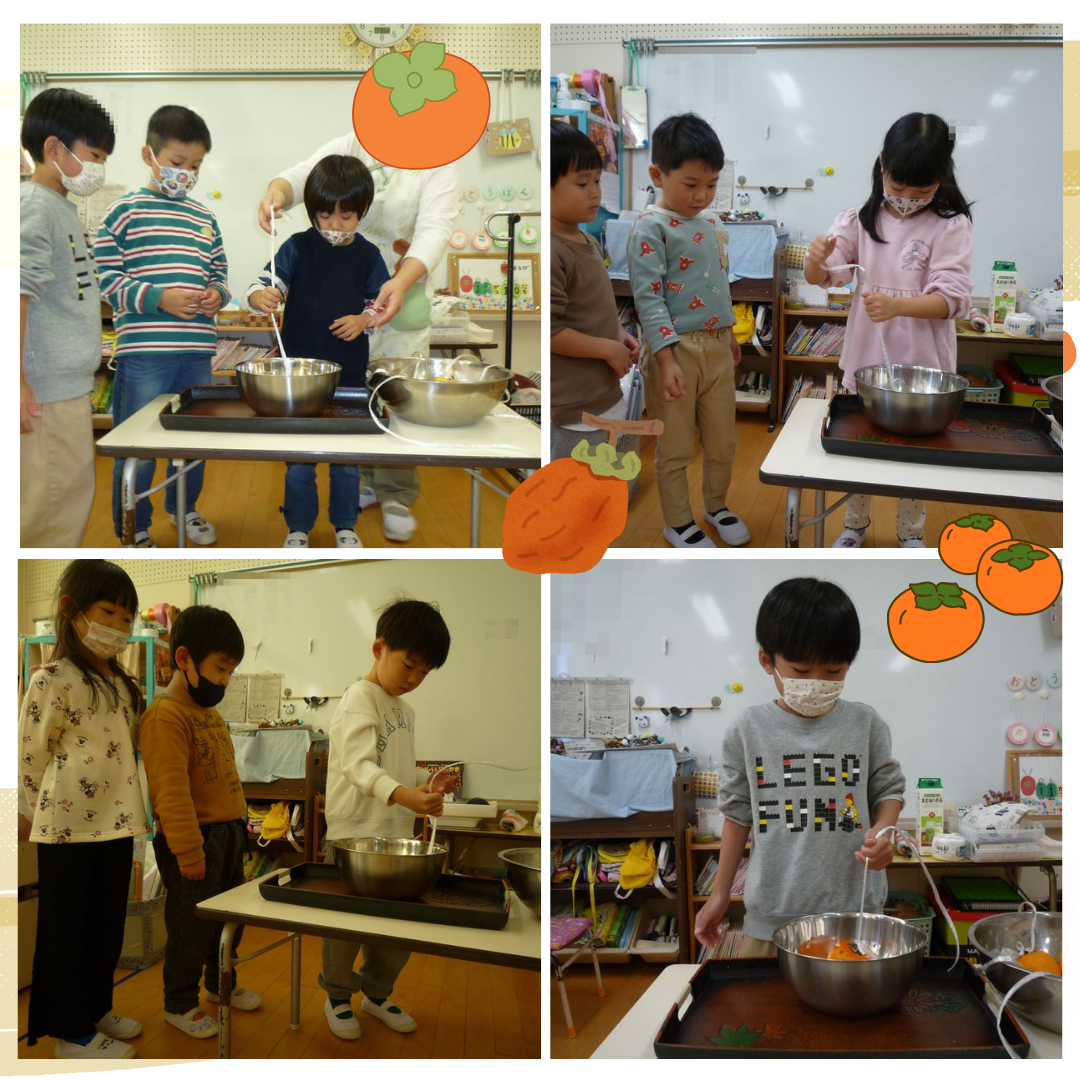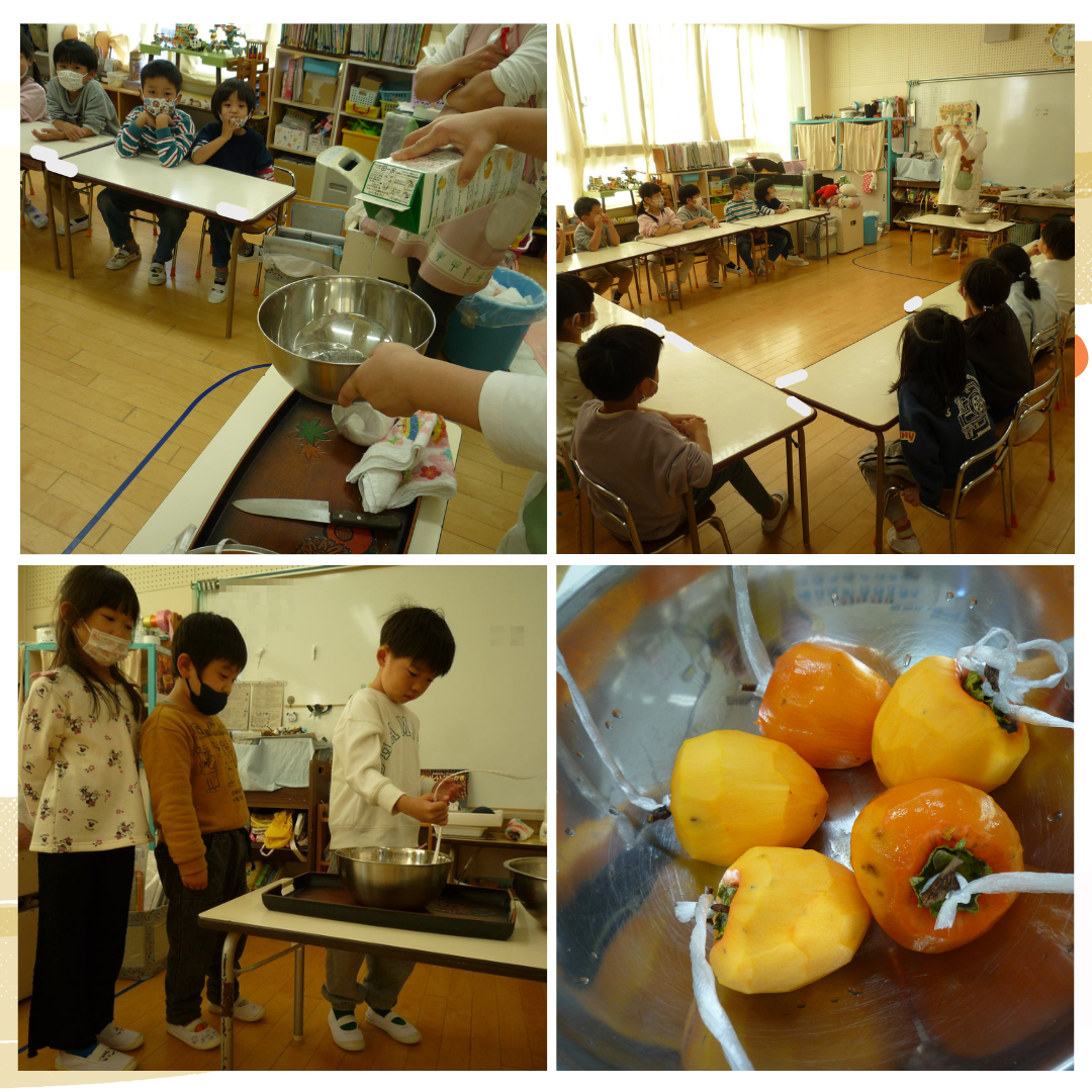 めろん組さんは渋柿で干し柿作りに挑戦しました。