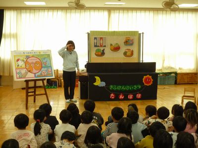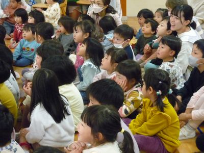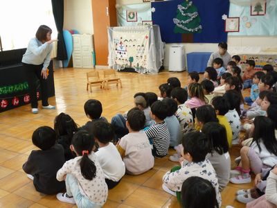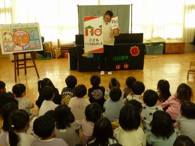 各務保育園で岐阜県警察本部少年課の幼児等連れ去り事案未然防止教育班 「たんぽぽ」の方のお話を聞きました お家でも「知らない人について行かない」などの約束事を再確認してください。