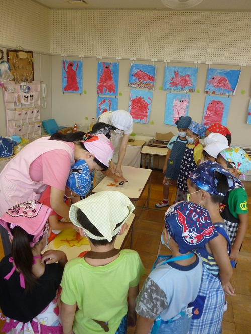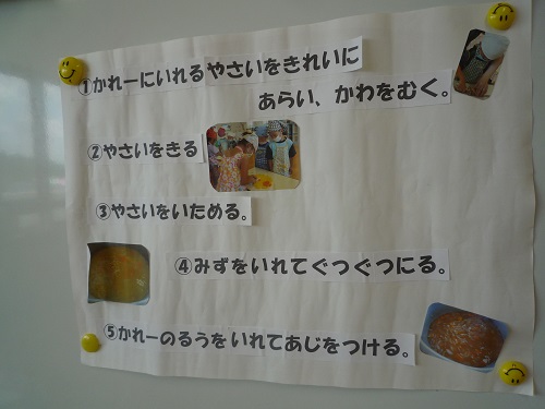 クッキングは、主に年長児クラスを始め年中、年少児クラスの在園児が行っています。