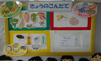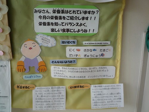 また、定期的に日中の給食の様子を掲示し、お子様がどのような給食をどのくらい食べているのか、またその雰囲気などを保護者の方々に感じていただけるようにしています。