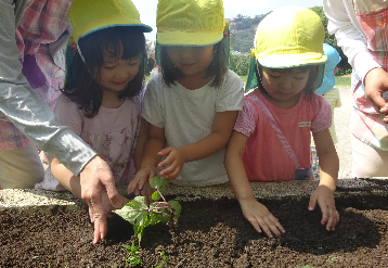 ○園庭での野菜づくり