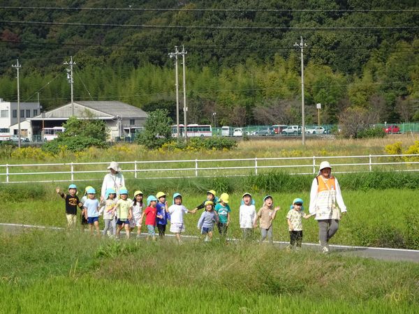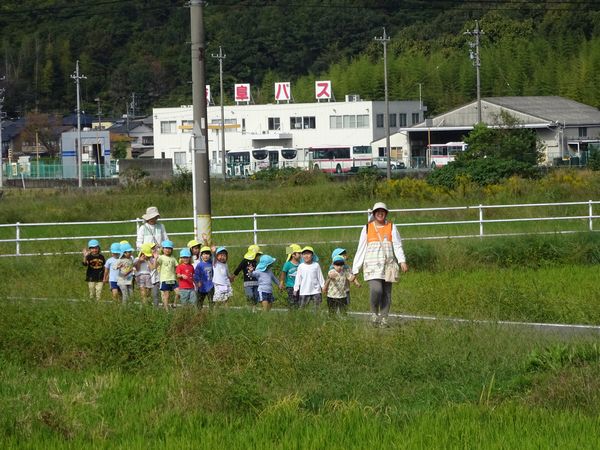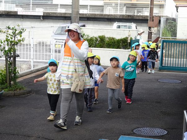 お散歩 ばなな組🍌 ばなな組さんが岐阜バスまでお散歩しました。 行きも帰りもニコニコで、帰りは園から随分と遠い場所から園庭に向けて『ただいま~👋』『お~い!』と全力で手✋を振り帰ってきていましたよ。 元気いっぱいのばなな組さんです!