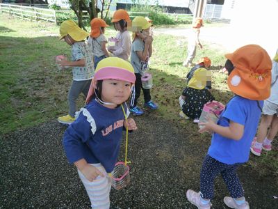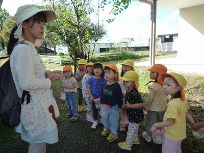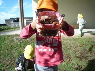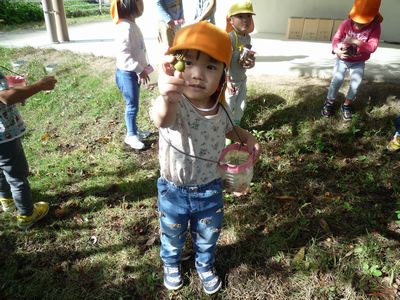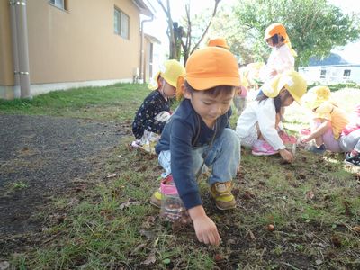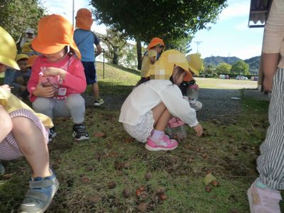 遠足 りんご組🍎 りんご組🍎さんは各務小学校に遠足にいきました。 職員室の先生にご挨拶をしてどんぐり拾いをしました。どんぐりの拾い方に個性があり、実だけを拾う子ども、どんぐりの帽子だけを集める子どもなど、夢中になって拾いました。 どんぐり拾いが終わったらタイヤで遊びました。 小学校への遠足はとっても楽しかったです。