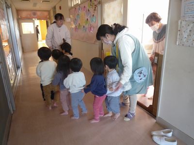 めろん組さんに見せるとお隣へ♪と一人ひとり順番にかぼちゃを回す姿が可愛らしかったですよ😊