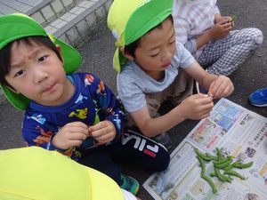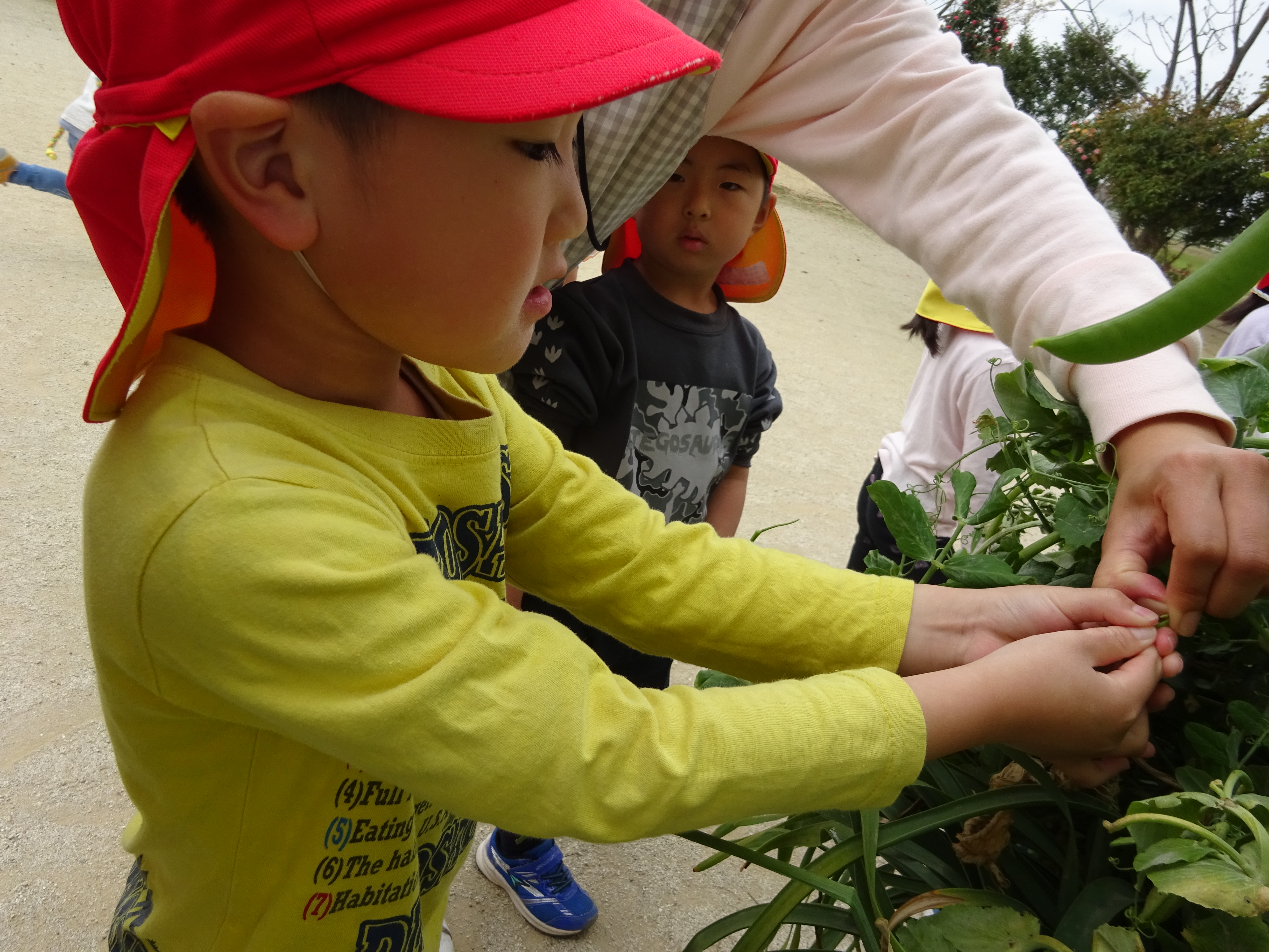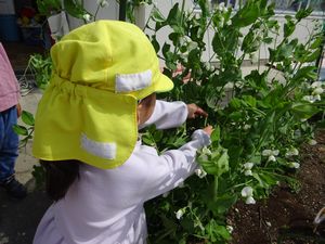 <食育>スナップエンドウ