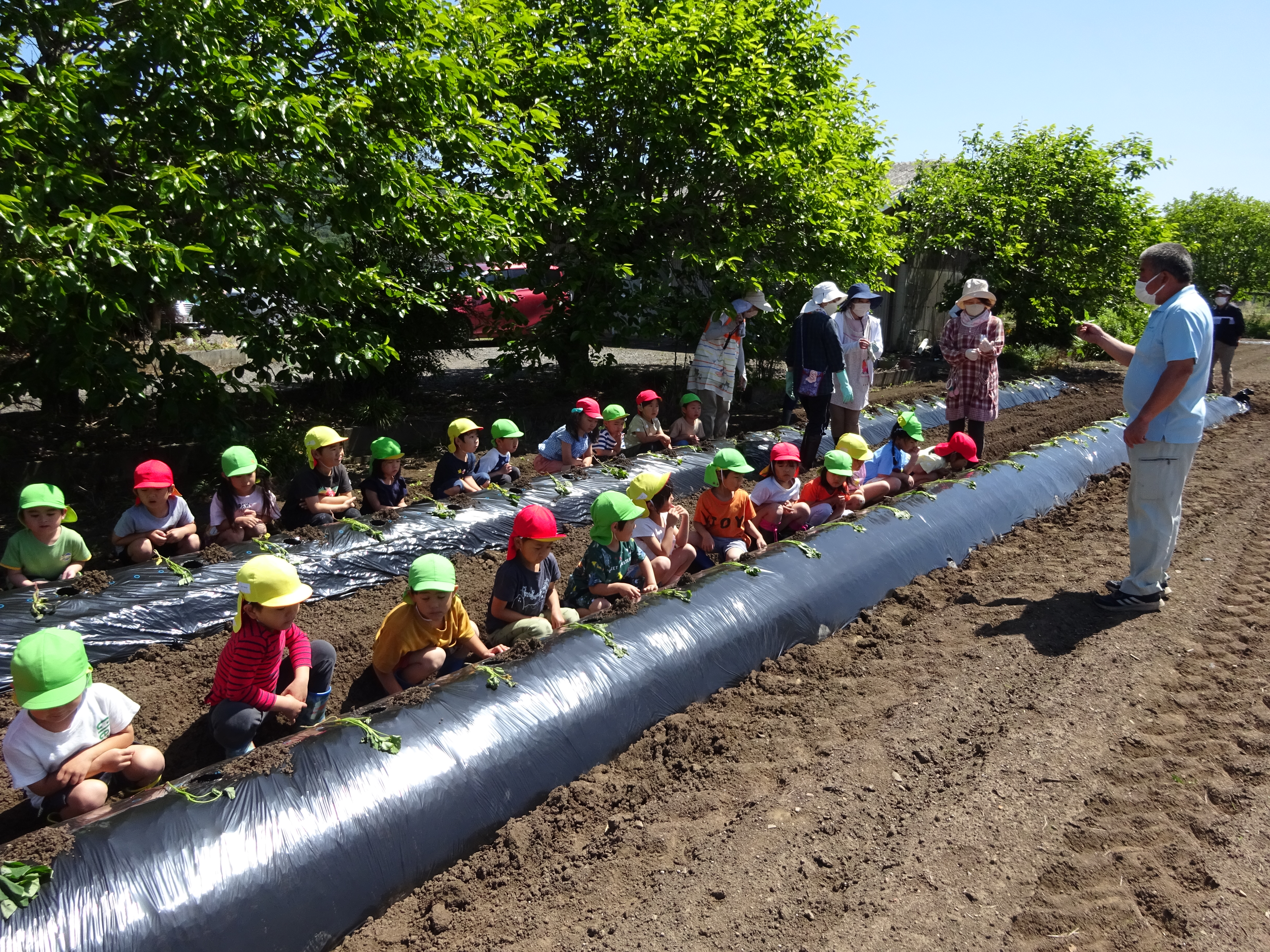 <食育>さつまいもの畝つくり