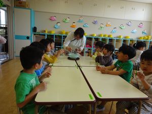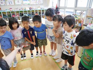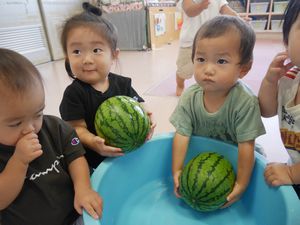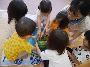 <食育>すいかを触ってみました。