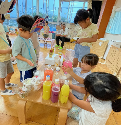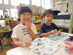 ハロウィンのように顔をつけてあげたい!と自分たちで可愛く飾りつけしてくれました👏