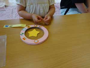 今日のすくすく子育て広場では、手づくりおもちゃで遊ぼう!とのことで「くるくるかざぐるま」を作りました🌟シール貼りを楽しんだあとは、ふーっと吹きかけて遊ぶ子、口に入れて舌触りを楽しむ子とそれぞれの楽しみ方で楽しんでいました💓